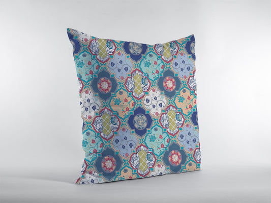 18” Blue Pink Boho Paisley Zippered Suede Throw Pillow