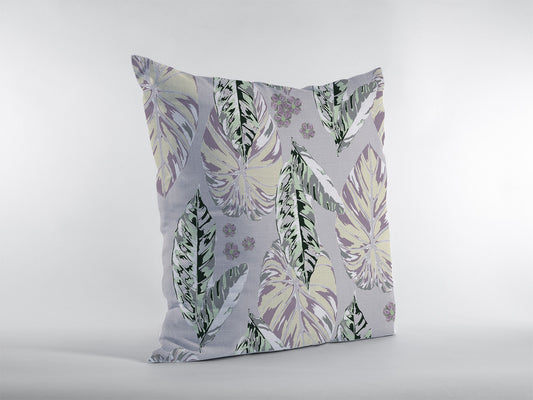 18” Blue Purple Tropical Leaf Suede Throw Pillow
