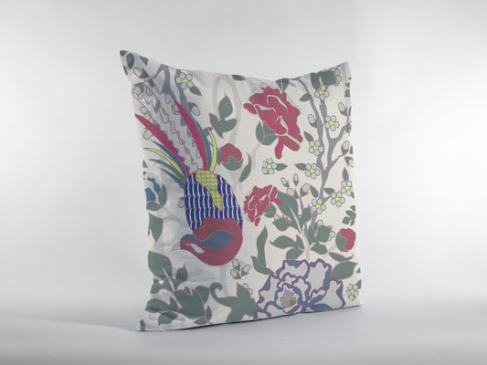 18” Pink White Peacock Zippered Suede Throw Pillow