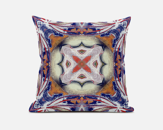 18” Pale Orange Blue Geo Tribal Suede Throw Pillow