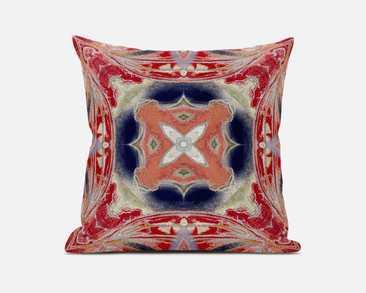 18” Red Blue Geo Tribal Suede Throw Pillow
