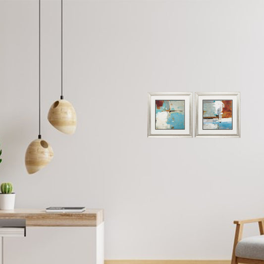 19" X 19" Brushed Silver Frame Blue Illusion (Set Of 2)
