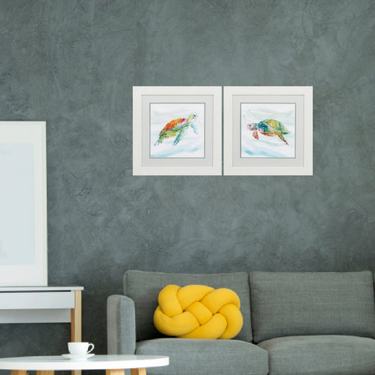 19" X 19" White Frame Turtle Tropics (Set Of 2)