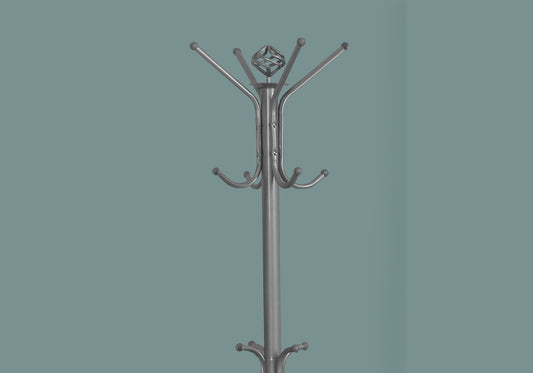 19" X 19" X 70" Silver Metal Coat Rack