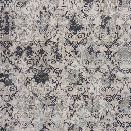 2' X 3' Cream And Gray Damask Stain Resistant Area Rug
