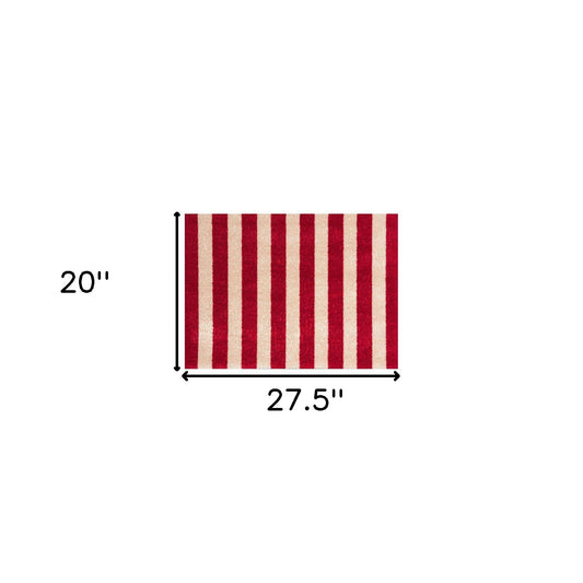 2' X 3' Red And Sand Striped Tufted Washable Non Skid Area Rug