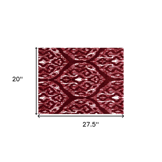 2' X 3' Red And White Ikat Tufted Washable Non Skid Area Rug