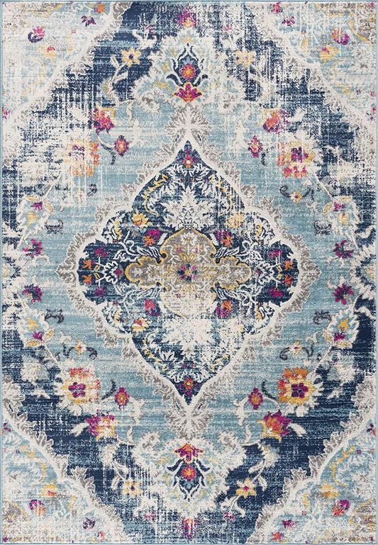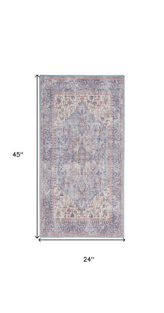 2' X 4' Blue Oriental Power Loom Distressed Washable Area Rug