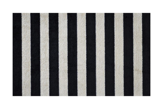 2' x 4' Black and Tan Wide Stripe Washable Floor Mat