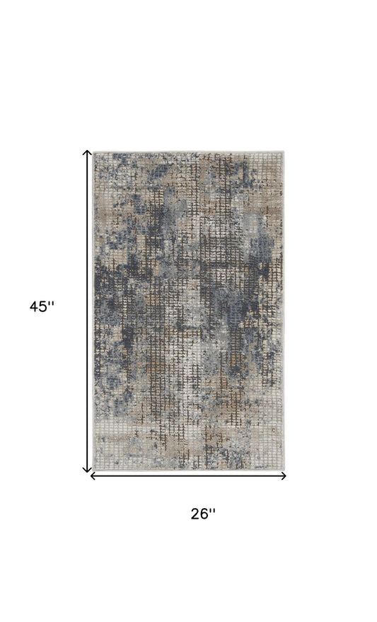 2' X 4' Blue And Beige Abstract Power Loom Non Skid Area Rug