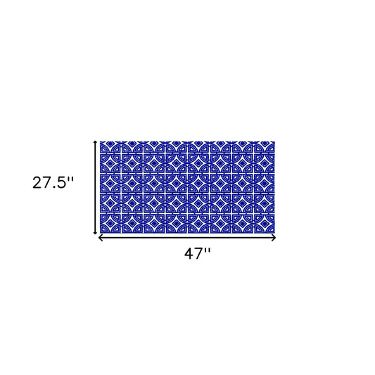 2' X 4' Cobalt Blue And White Geometric Washable Non Skid Area Rug