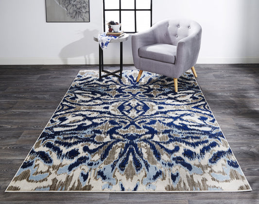 2' X 4' Blue Taupe And Ivory Ikat Distressed Area Rug