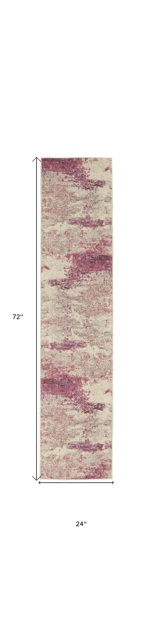 2' X 6' Ivory And Pink Abstract Power Loom Non Skid Runner Rug