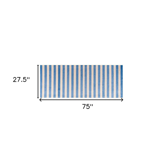 2' X 6' Ocean Blue And Sand Striped Tufted Washable Non Skid Area Rug