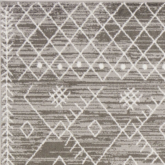 2' X 7' Gray And White Boho Geo Area Rug