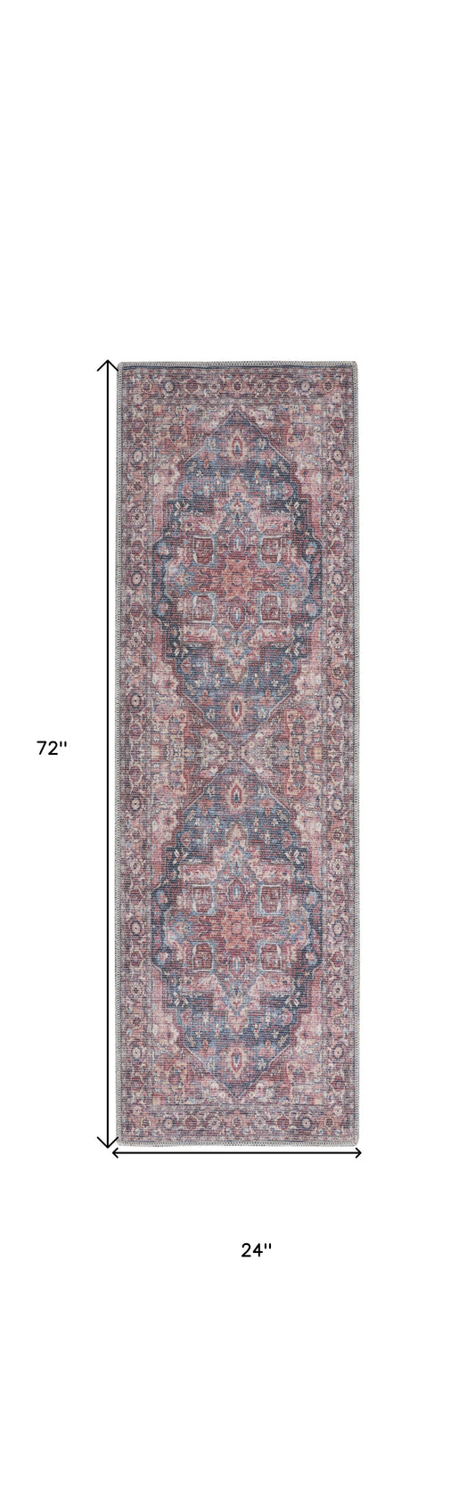 2' X 6' Red Blue Brown And Beige Oriental Power Loom Stain Resistant Runner Rug With Fringe