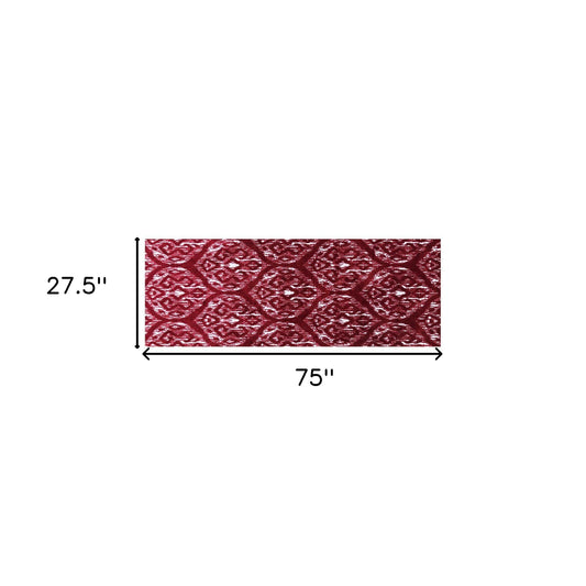 2' X 6' Red And White Ikat Tufted Washable Non Skid Area Rug