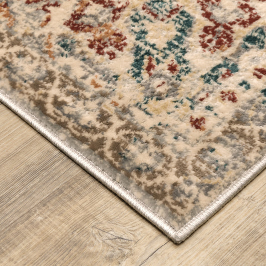 2' X 8' Grey Rust Deep Teal Beige And Orange Oriental Power Loom Stain Resistant Runner Rug