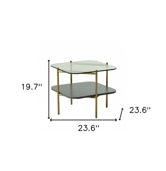 20" Gold And Clear Glass And Metal Square End Table With Shelf