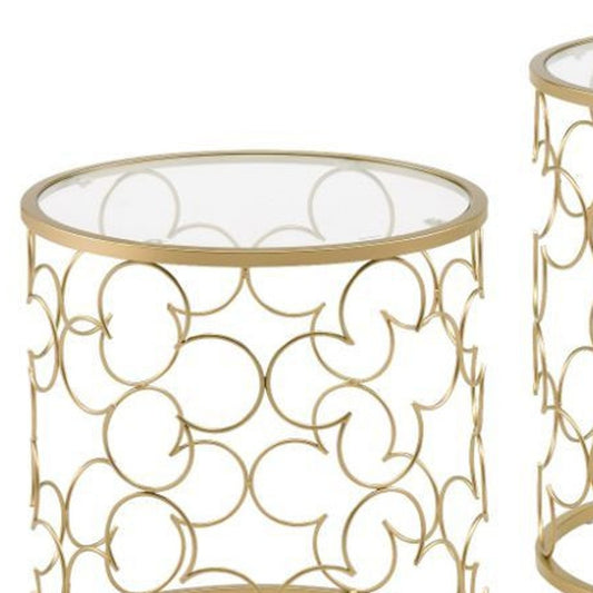 20" Gold And Clear Glass Round Nested Coffee Tables