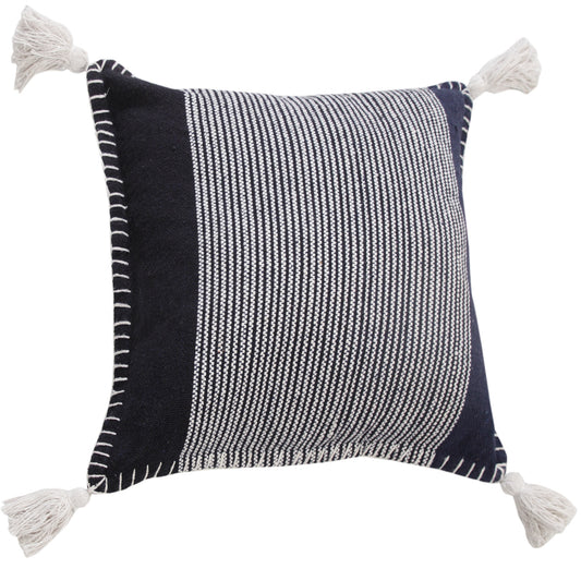 20" X 20" Black Navy And White 100% Cotton Striped Zippered Pillow