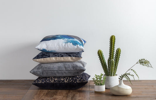 20" X 20" Blue 100% Cotton Abstract Zippered Pillow