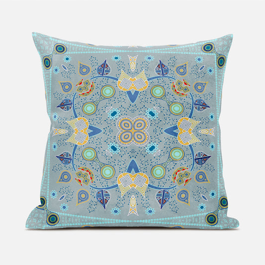 20" X 20" Blue and Gray Broadcloth Paisley Zippered Pillow