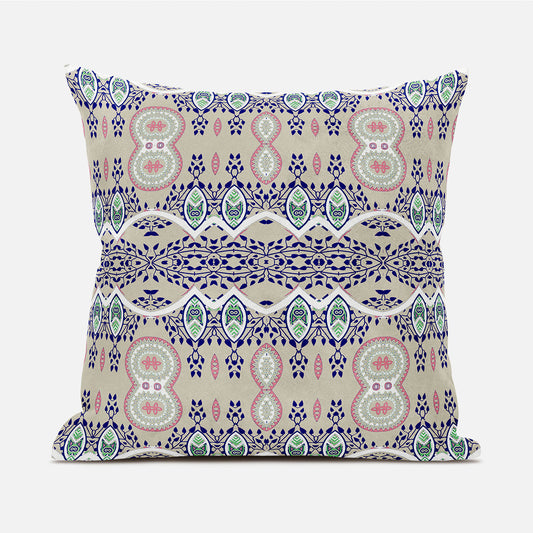 20" X 20" Blue and Beige Broadcloth Paisley Zippered Pillow