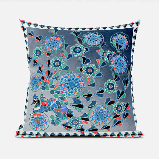 20" X 20" Blue and Gray Peacock Broadcloth Floral Zippered Pillow