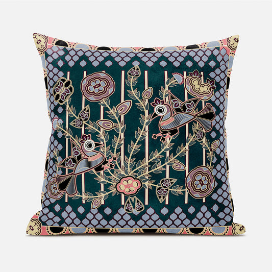 20" X 20" Blue and Green Peacock Broadcloth Floral Zippered Pillow