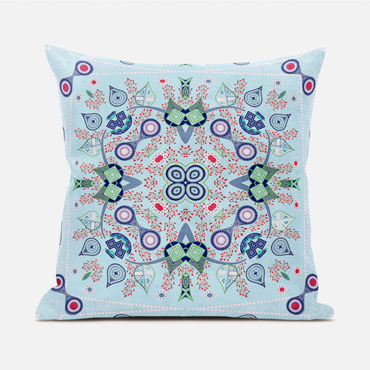 20" X 20" Blue and Green Broadcloth Paisley Zippered Pillow