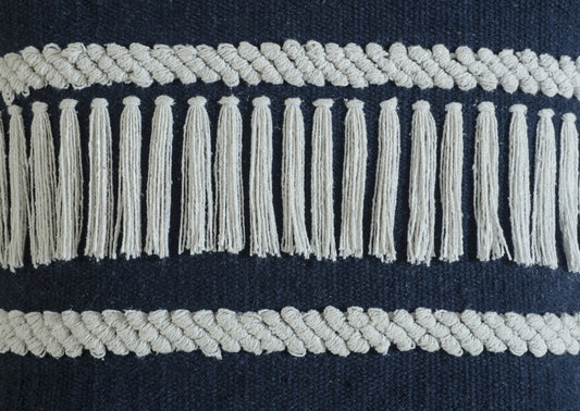20" X 20" Blue And Ivory 100% Cotton Chevron Zippered Pillow