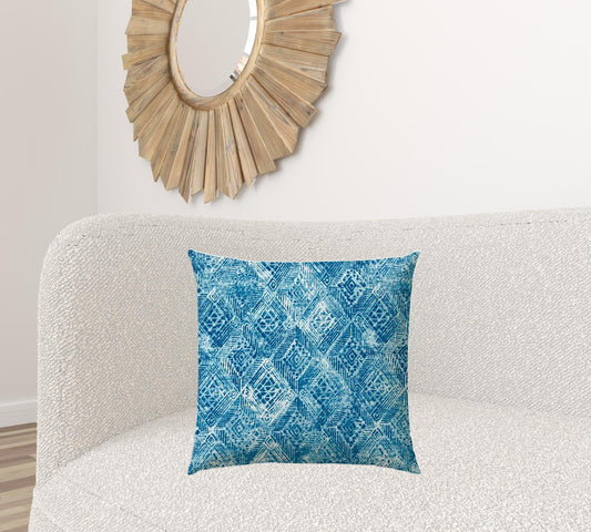 20" X 20" Blue And White Blown Seam Ikat Throw Indoor Outdoor Pillow