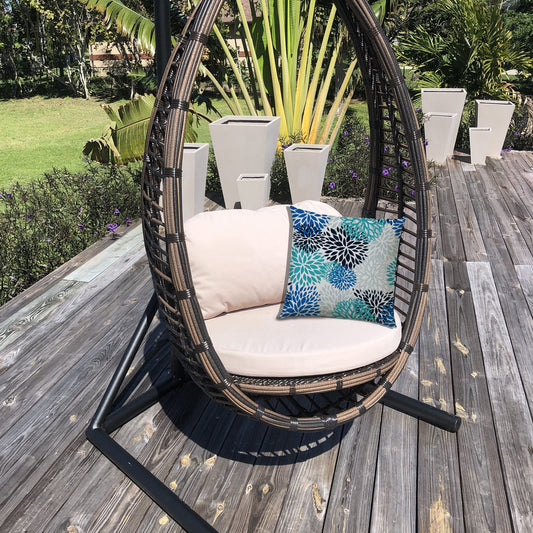 20" X 20" Blue And White Blown Seam Floral Throw Indoor Outdoor Pillow