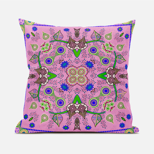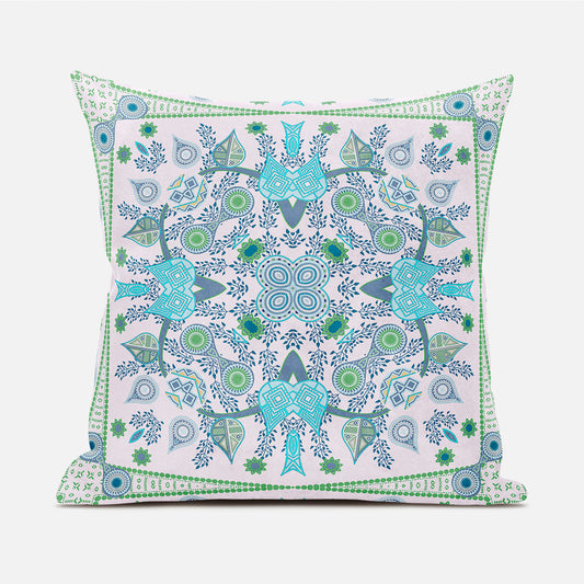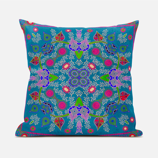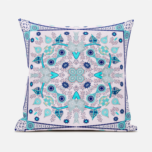 20" X 20" Blue and Pink Broadcloth Paisley Zippered Pillow