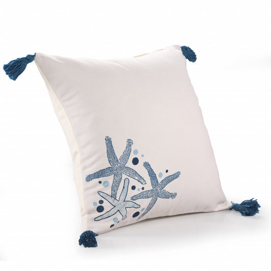 20" X 20" Blue And Off-White Fish Polyester Animal Print Zippered Pillow