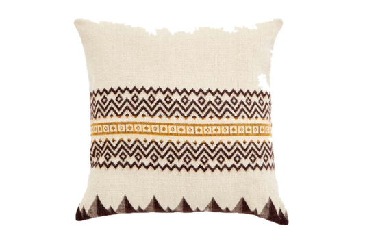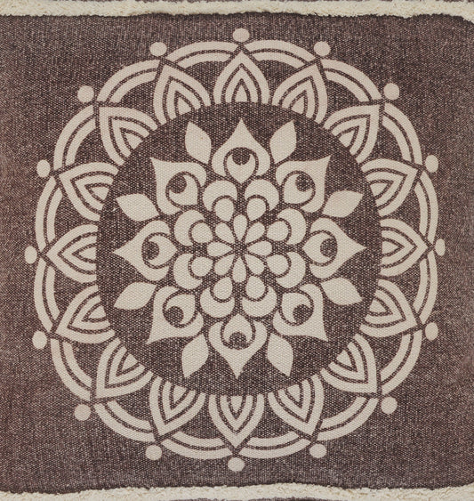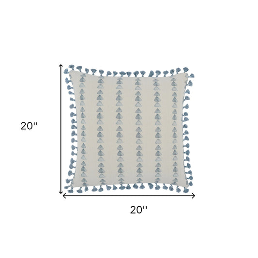 20" X 20" Brown and White Cotton Zippered Pillow With Embroidery, Tassels
