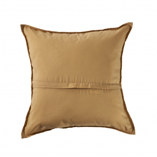 20" X 20" Brown and Ivory Faux Leather Zippered Pillow