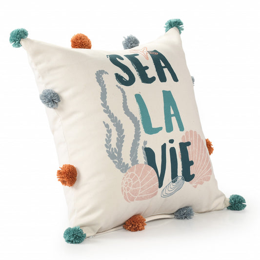 20" X 20" Bright Blue And White 100% Cotton Coastal Zippered Pillow