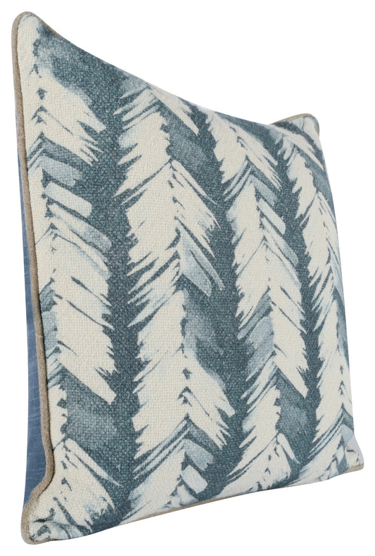 20" X 20" Blue Polyester Floral Zippered Pillow