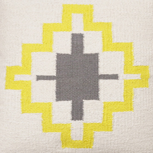 20" X 20" Gray White And Yellow 100% Cotton Geometric Zippered Pillow