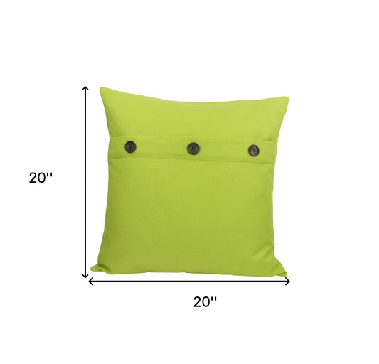 20" X 20" Green Linen Blend Zippered Pillow With Buttons