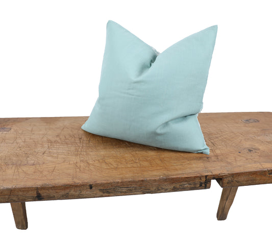 20" X 20" Green Blue And White 100% Cotton Geometric Zippered Pillow