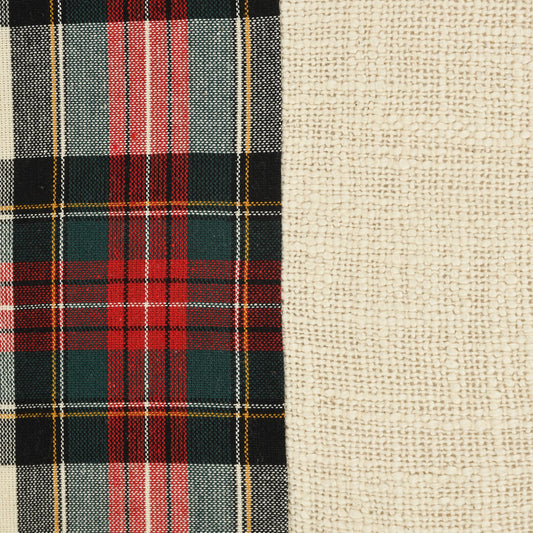 20" X 20" Ivory and Green Christmas Plaid Cotton Zippered Pillow With Tassels