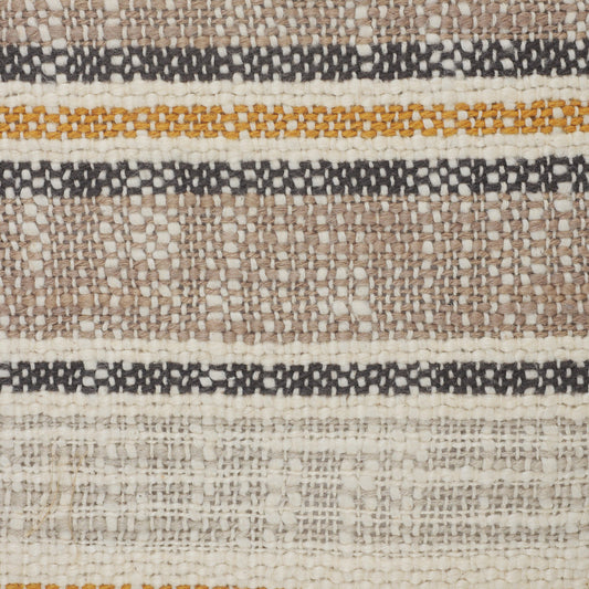 20" X 20" Taupe Gray Yellow And Navy 100% Cotton Striped Zippered Pillow