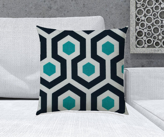 20" X 20" White And Aqua Blown Seam Trellis Throw Indoor Outdoor Pillow