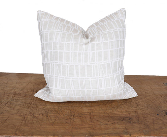 20" X 20" White And Beige Trellis Zippered Cotton Blend Throw Pillow