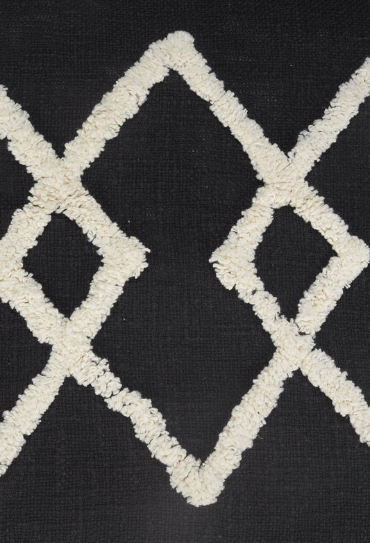 20" X 20" White And Black 100% Cotton Geometric Zippered Pillow