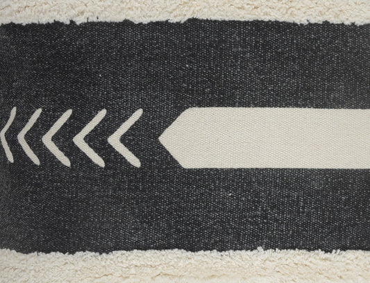20" X 20" White And Black Ribbed Zippered Hand Loomed Cotton Blend Throw Pillow With Fringe