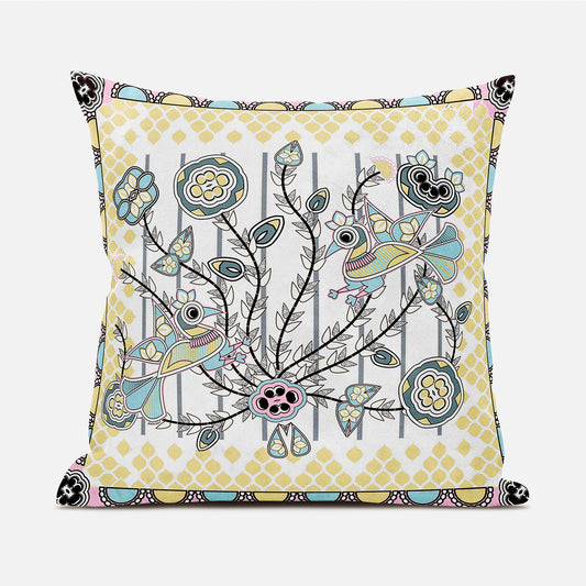 20" X 20" Yellow and White Peacock Broadcloth Floral Zippered Pillow